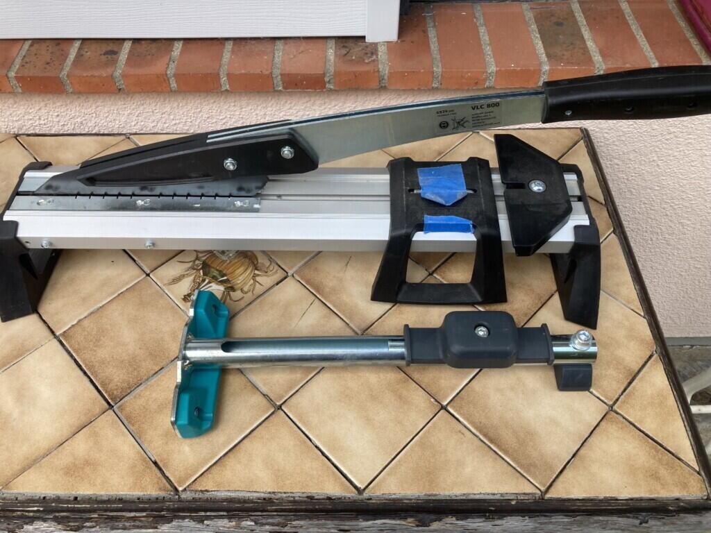 Location d un découpe parquet manuel pour parquet stratifié de marque Wolfcraft modèle LC800 + lame marteau pour taquer le parquet de marque Wolfcrat.