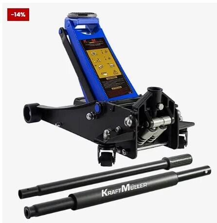 Cric automobile Kraftmuller 2 tonnes + avec 4 chandelles et 4 calles de roues. Qualité professionnelle l'équipement est lourd soit 40 kg en tout. Il permet de soulever un voiture en 5 mouvement. Cric très puissant.