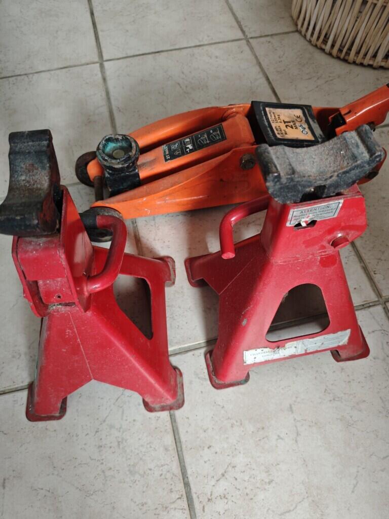 Cric 2 tonnes avec deux chandelles 3 tonnes parfait pour petit travaux sur votre voiture.