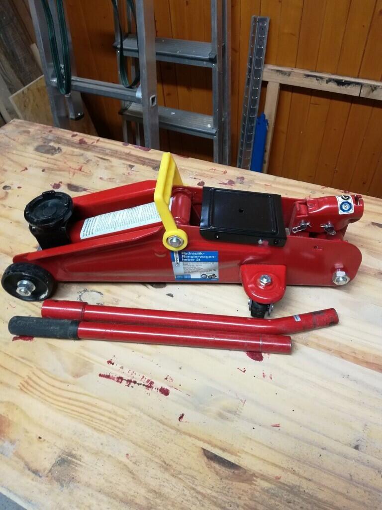 Cric équipé d'un long levier permettant d’actionner son système hydraulique de manière efficace, sans se fatiguer