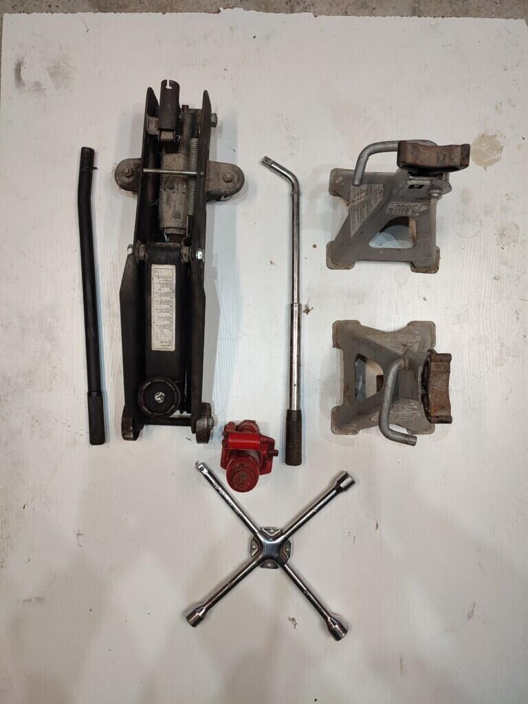 Cric hydraulique + cric hydraulique chandelle + 2 chandelles verrouillables