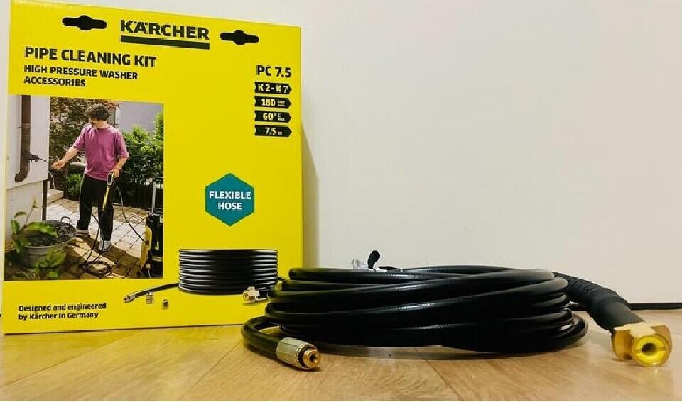 Tuyau 7,5 m souple et durable de haute qualité. Pour un nettoyage simple et efficace des canalisations grâce à la haute pression. S’adapte à toutes les canalisations. Sa tête en laiton lui garantit une grande solidité.