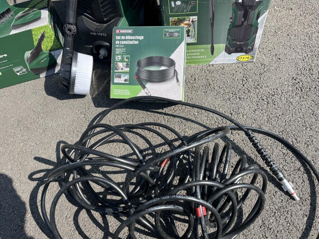 Set de debouchage d’une longueur de 15m loué avec le nettoyeur haute pression d’une puissance de 170 bars. Fonctionne très bien quand une canalisation est bouchée.