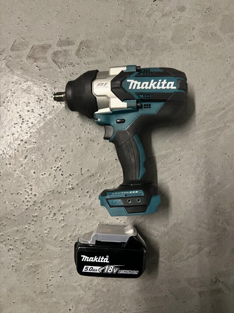 Location clé à chocs/boulonneuse sur batterie – outil permettant de transmettre la force uniquement sur l’écrou/visse et non sur l’axe. Modèle Makita diamètre 1/4 en version très puissante 1000 nm (newton mètre) avec 3 niveaux de réglage de puissance.
