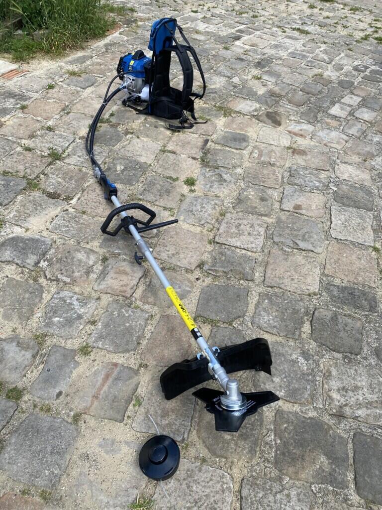 Débroussailleuse puissante 65cm3 équipée d’une lame de coupe ou d’un fil coupe bordure à votre guise!