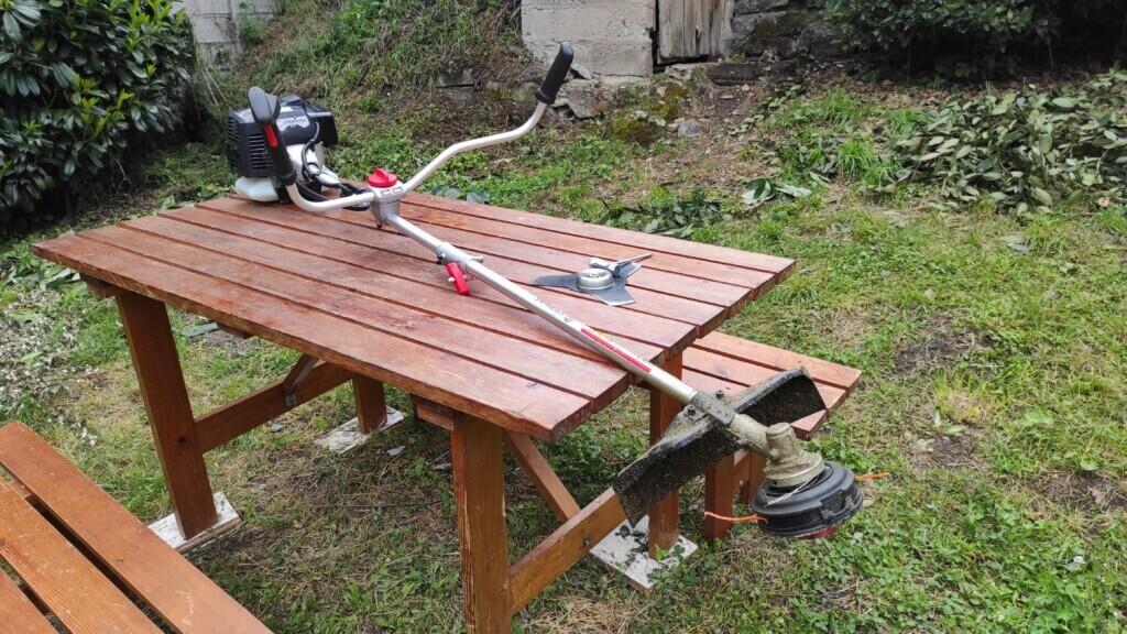 Débroussailleuse thermique 43 cc avec lame coupe herbe ou fil.