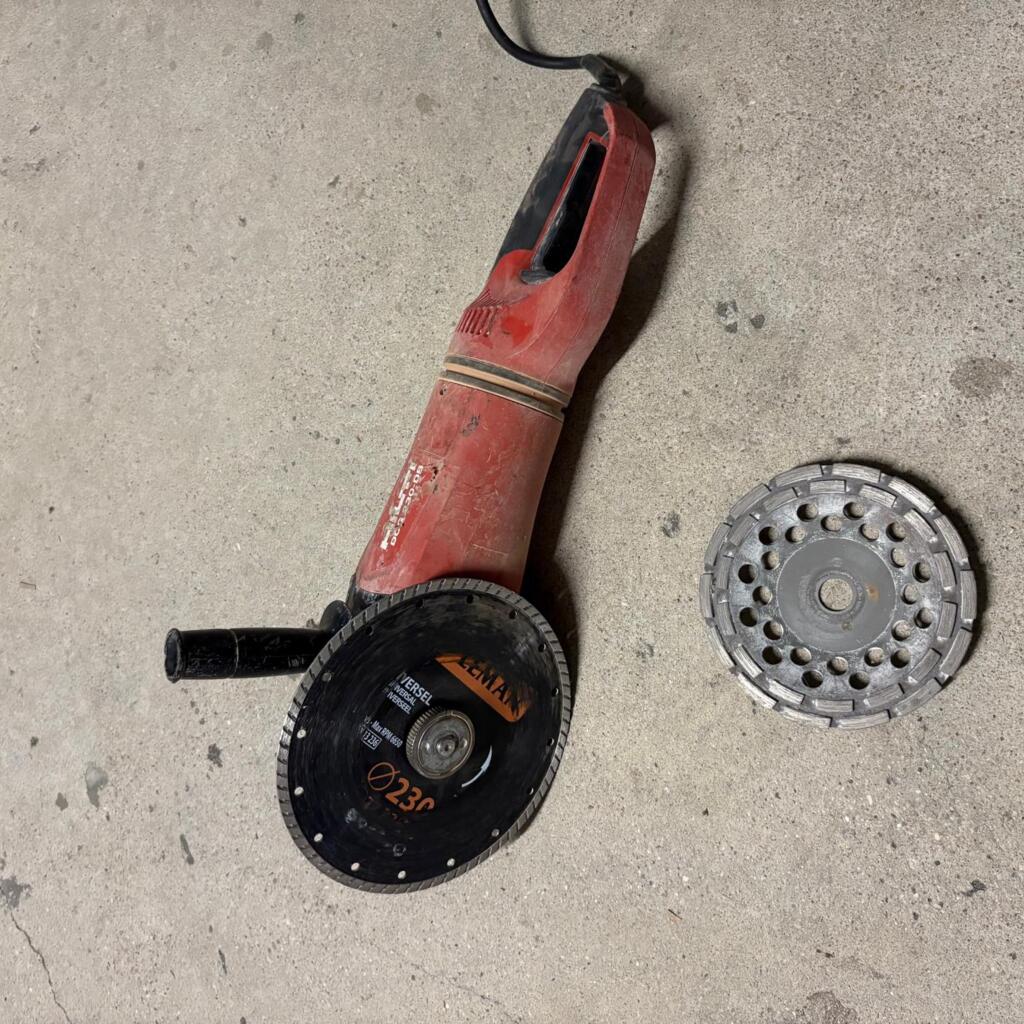 Montée avec un disque diamant pour découpe du béton, possibilité de fournir un plateau de ponçage béton diamètre .