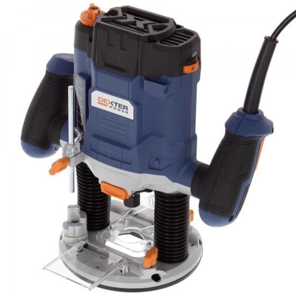Défonceuse de marque Dexter. Coffret avec guide de coupe