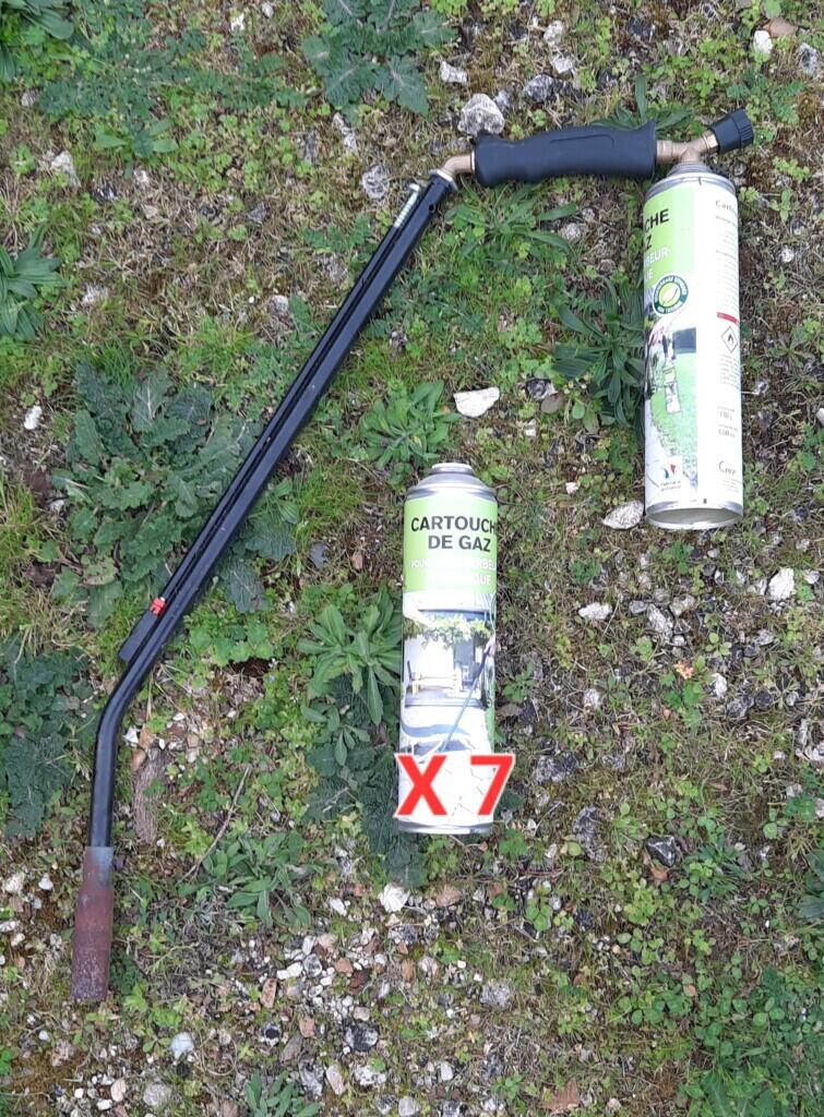 Je propose ce désherbeur thermique à cartouche de gaz. Allumage par bouton piezzo. Nécessite des cartouches que je propose à 6€ (8 en stock)