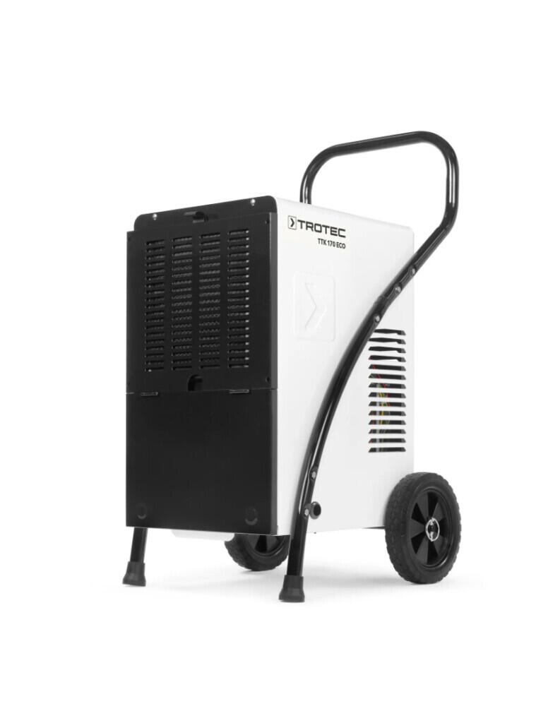 Déshumidificateur d'air professionnel à haute capacité de déshumidification de 52 l/24 h pour 90 m²/230 m³ max. avec débit d'air de sortie de 350 m³/h.