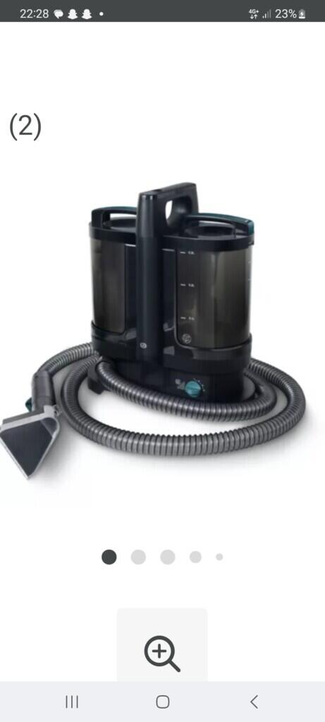 Extracteur injecteur détacheur marque Essentiel B avec 2 brosses une large et une pour poils etc.. un bac eau propre et produit un bac eau usagée. Bouton boost pour aspiration +++ possibilité de régler l’intensité de l’eau