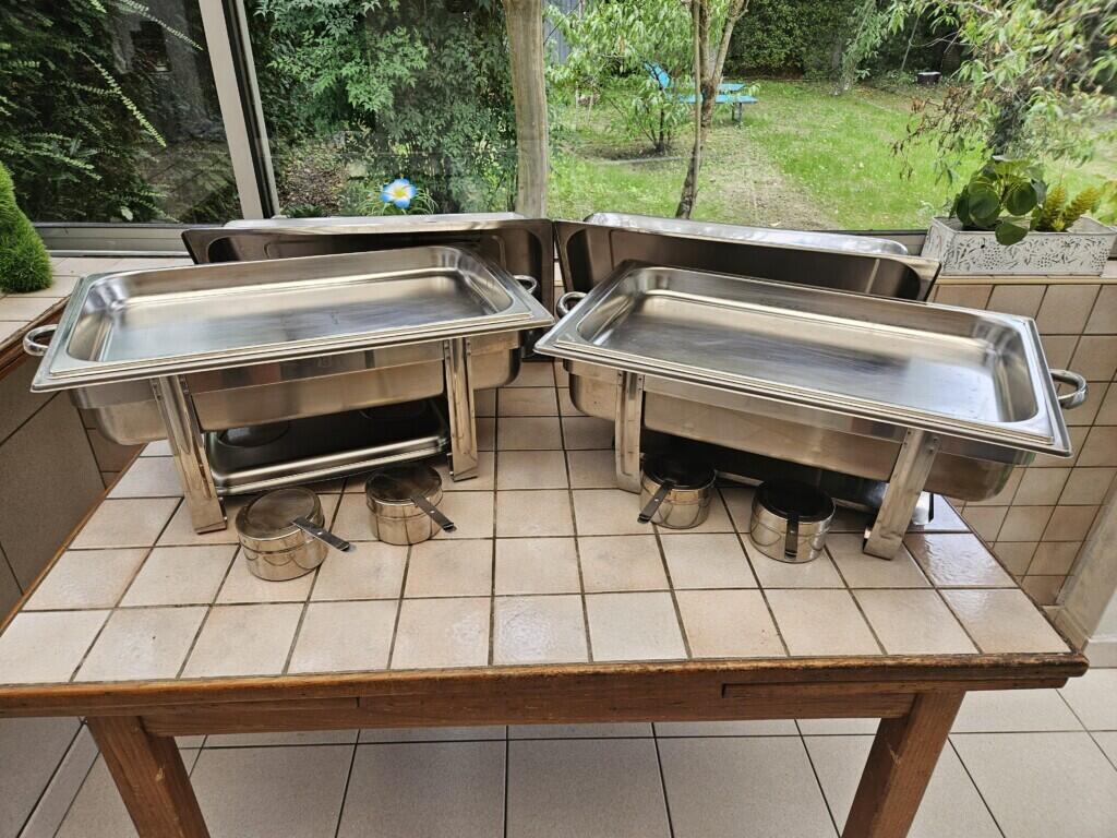 2 chafing dishes, pour maintenir au chaud les aliments et les plats, lors d’événements comme les mariages, anniversaires, réceptions, etc.