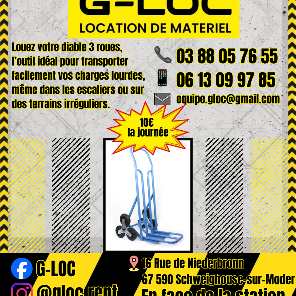 📞 Contactez-nous dès maintenant pour réserver votre diable 3 roues et faciliter le transport de vos charges !