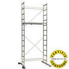 Montage : une seule personne suffit pour monter l'échafaudage en extérieur ; en intérieur il est préférable d'avoir l'aide d'une 2ème personne et d'utiliser un escabeau.