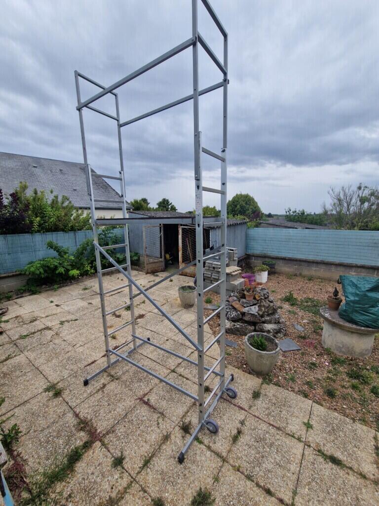 Echafaudage pour intérieur. Hauteur du plateau 2m50 pour une hauteur de travail max d’environ 4m50. 1m10 de largeur aux pieds.