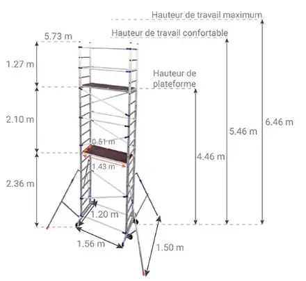 Echafaudage aluminium FACAL hauteur de travail 6.46 m