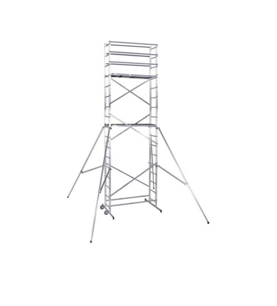 Cet échafaudage permet d’effectuer des travaux à une hauteur de 6,46 m maximum, de plus son assemblage est rapide grâce à un système de verrouillage à expansion automatique.