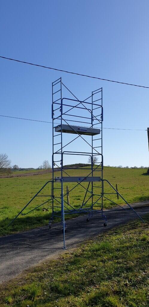 Usage intérieur et extérieur avec une hauteur de plancher maxi de 4m, donc une hauteur de travail maxi de 6m. Dimension des plateaux : 0,45m x 1,60m.