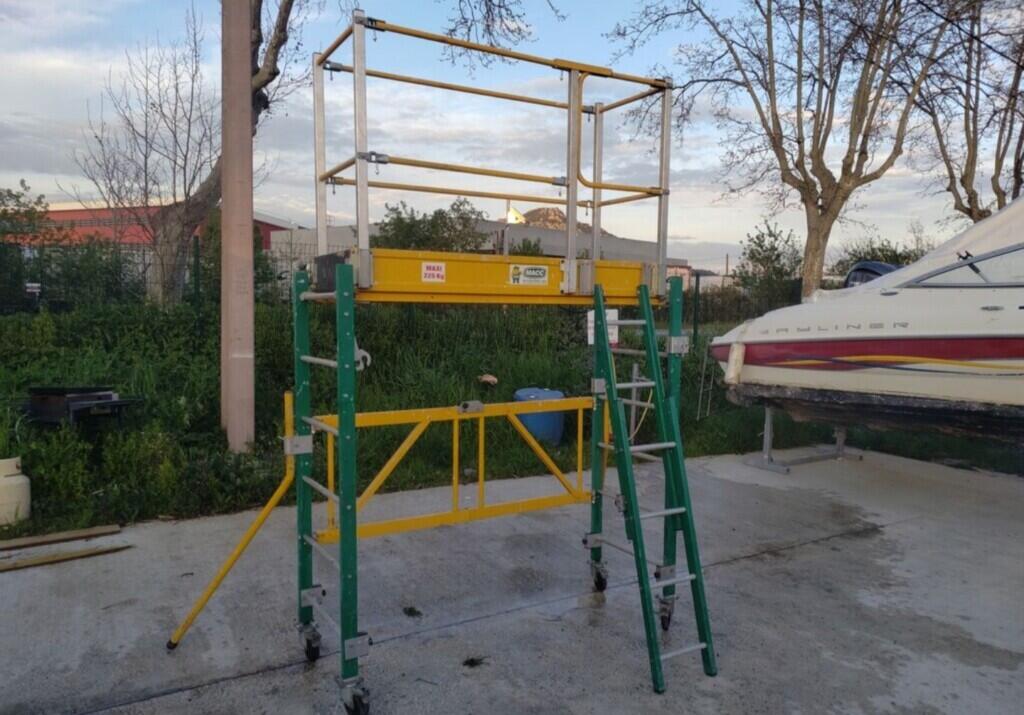 Echaffaudage macc KIWI roulant , hauteur de plateau max 1m70 et hauteur de travail se résumant à 3m70 idéal en intérieur avec faible largeur pour passage de porte.
