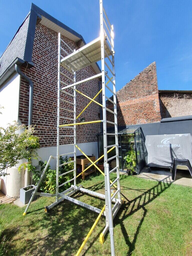 Echafaudage aluminium en 3 hauteur idéal pour des petits travaux. Hauteur de travail 5,70m, démontage facile, rentre dans une berline