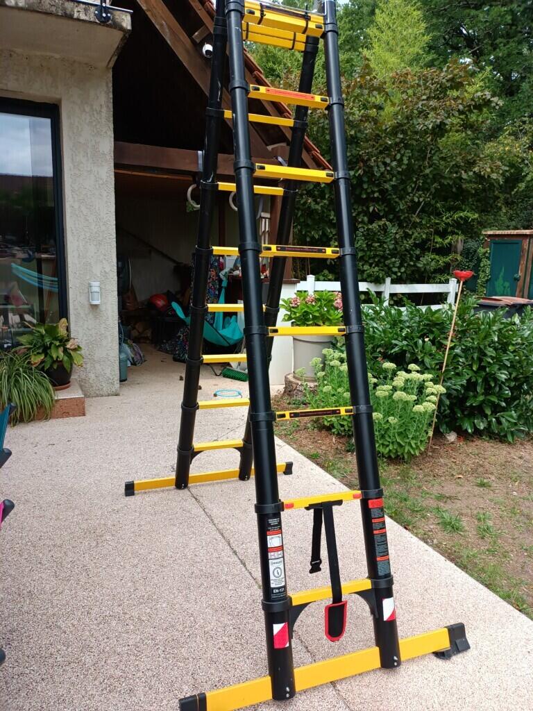 Je vous propose la location d'un escabeau télescopique Woerther qui mesure 2m80 en mode escabeau et 5.60m en mode échelle.