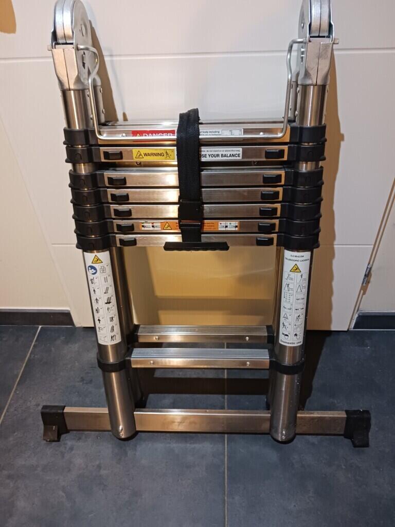 échelle Télescopique en Aluminium, échelle télescopique Extensible, Escabeau Telescopique échelle Pliable Loft Ladder,Certifié EN131, Résistance à 150kg, 5M(2,5M+2,5M