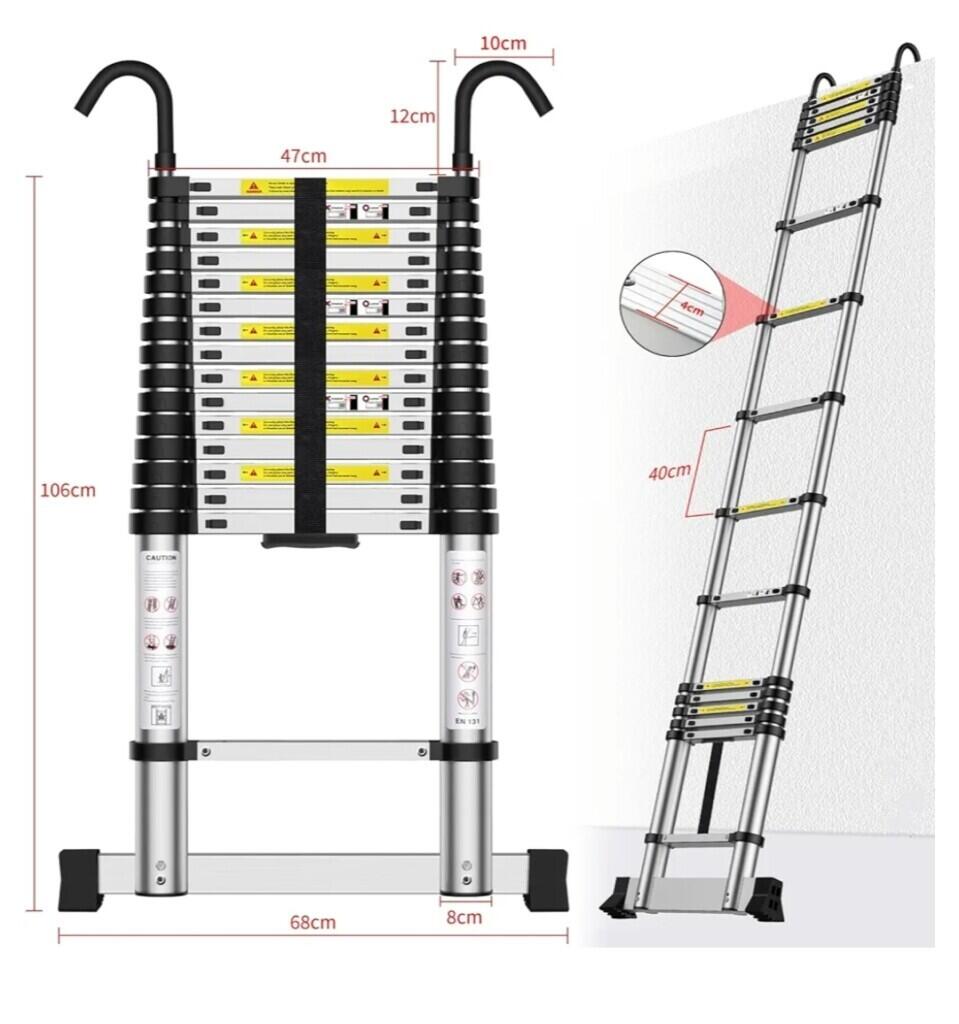 échelle Pliante en Aluminium avec Crochets, Hauteur Réglable, Charge Max 150kg, pour L'entretien de La Maison, Le Garage, Le Camping Etc.