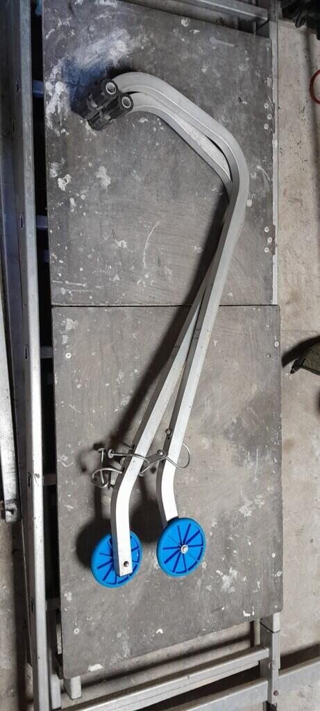 Paire de crochet de faîtage à monter sur une échelle classique afin de la suspendre au faîtage de toiture. Facile à monter Facile à utiliser. L’arrière des crochets et muni de roues livraison possible landerneau ou retrait ploudiry