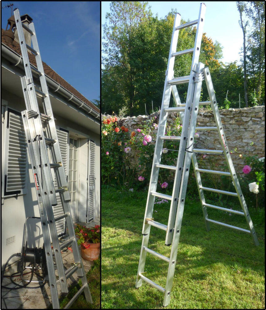L'échelle peut supporter un poids maximum de 150 kg.Elle doit être utilisée sur un terrain stable et horizontal.<br />