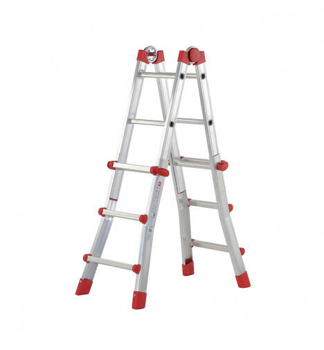Echelle multifonction Aluminium – 4×3 échelons – Utilisable en échelle d'appui ou échelle double – Bases évasées – Longueur réglable échelon par échelon – Hauteur d'accès max 3m70 – Longueur max 2m74 – Sécurité et flexibilité d'utilisation – Système de blocage automatique – Hauteur réglable grâce aux poignées latérales – 2 articulations centrales pour le réglage en échelle d'appui ou double