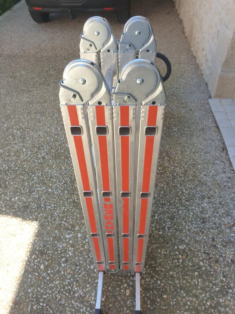 Grande échelle pliante avec différents niveaux et idéale pour accéder au toit. Merci