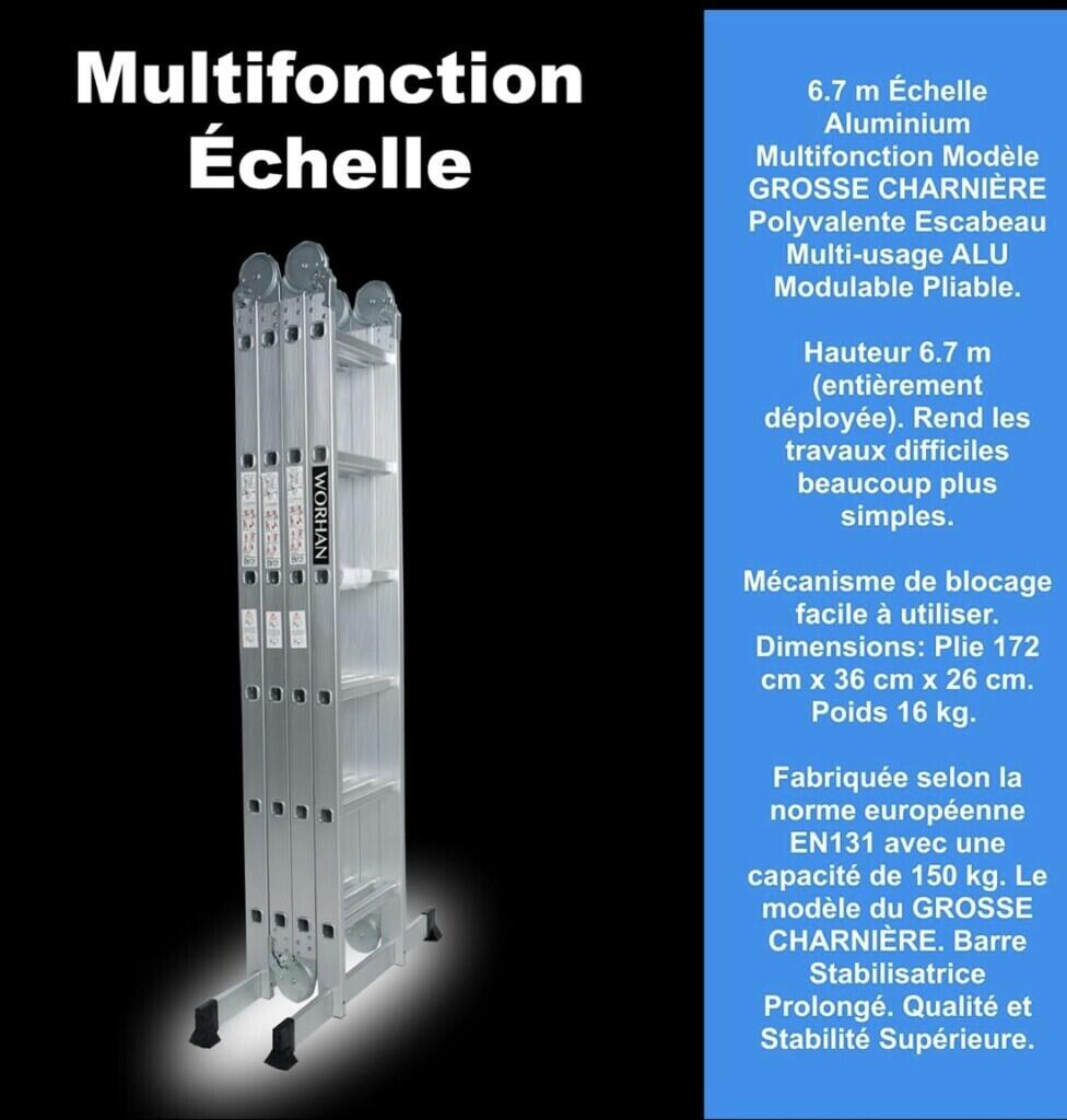 Échelle 4 plans alu fabrication française, très facile à transporter (1,75m une fois pliée), 6,70m dépliée.