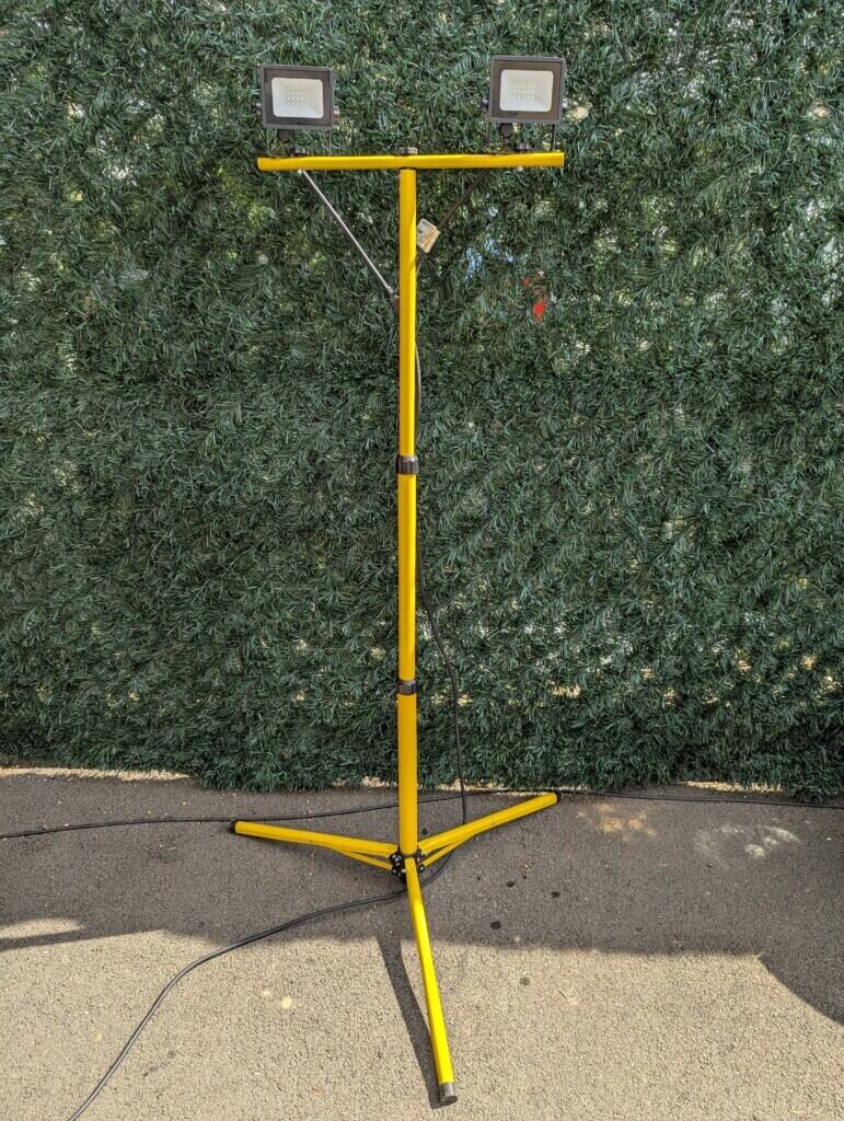 Éclairage de chantier IP65, extensible jusqu'à 1m45. Deux projecteurs orientables indépendamment.