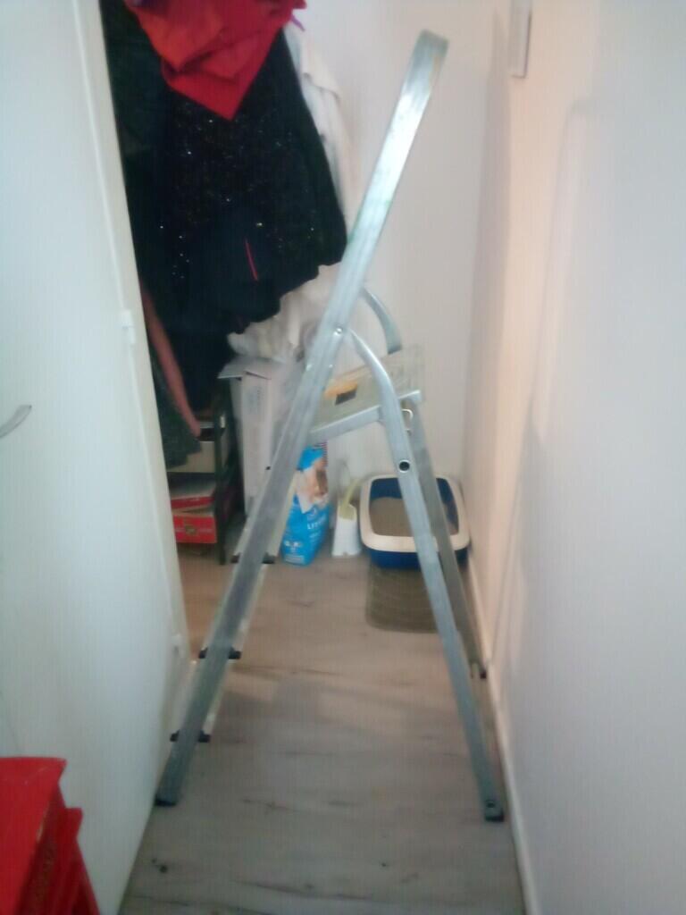 Escabeau bon état acheté à LEROY MERLIN. Hauteur : 1 mètre
