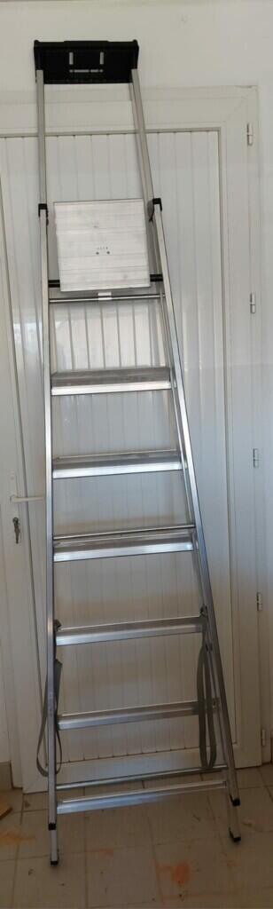 Escabeau, ESCALUX, 1m45 hauteur de plateau et 2m05 de hauteur déplié.