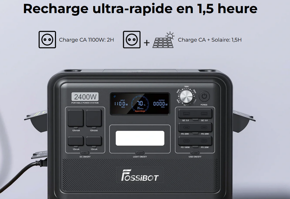accédez à une LOCATION STATION ELECTRIQUE LYON haut de gamme : la FOSSiBOT F. Cette station électrique portable ≈ Wh délivre jusqu’à W en continu (crête plus élevée), pour alimenter outils, électroménager, vidéo/sonorisation, informatique ou cuisine sans bruit, sans fumées et sans essence.