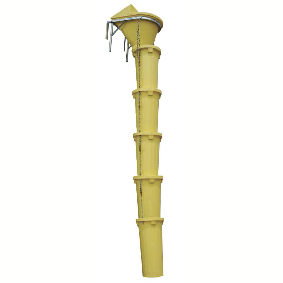 Goulottes d’évacuation composé de 5 goulottes de 1.06 mètres avec chaines Ø inférieur 39 cm et Ø extérieur 49 cm + 1 cadre de départ (ouverture 80 à 480 cm) + 1 goulotte de départ .