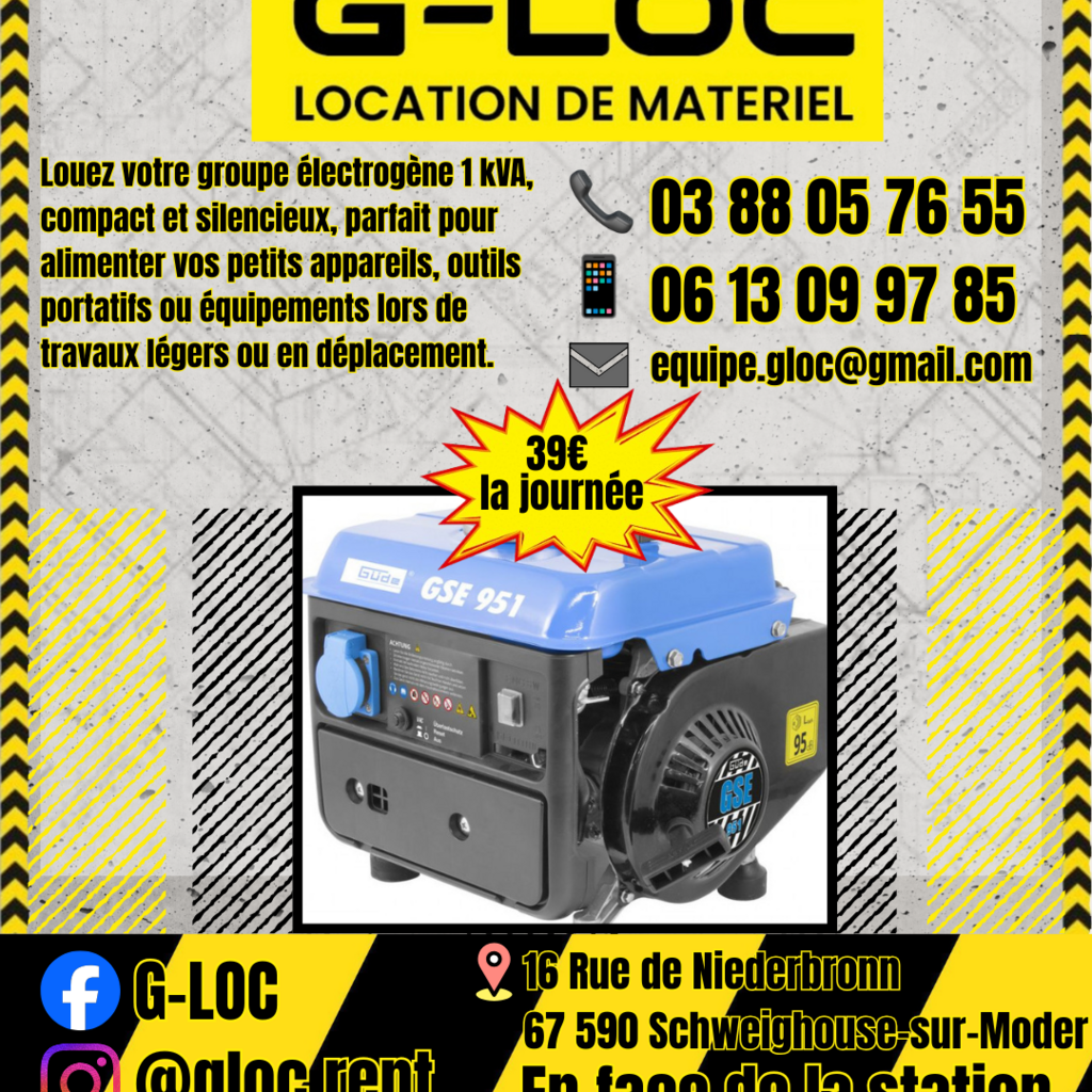 📍 Retrait et retour sur rendez-vous dans nos locaux G-LOC