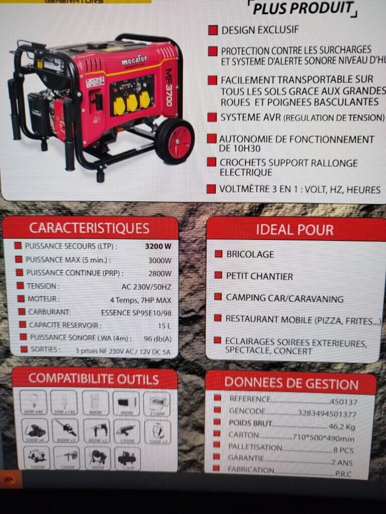 groupe électrogène d’une puissance de 3200w max et environ 2800w en continue