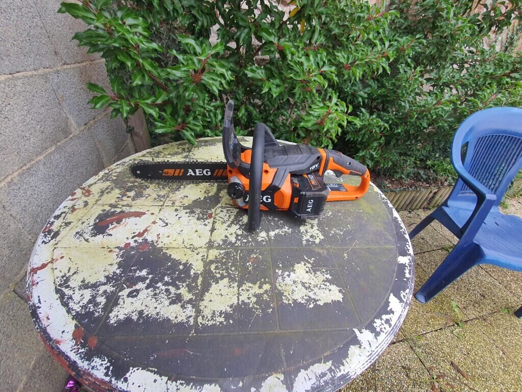 Je vous propose une tronçonneuse à charpente AEG en 18V