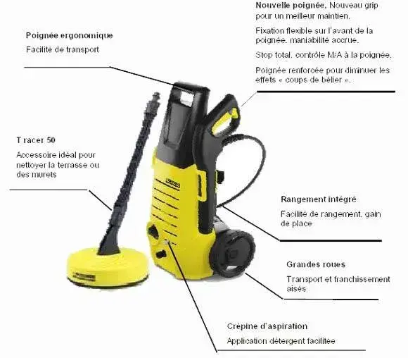 KÄRCHER Nettoyeur haute pression K 238 M + T50- Pression 110 bars – Débit 360 L/h – Puissance 1400W – Moteur universel – Pompe Ncor, solide et robuste – Chariot, rotabuse, lance haute pression, flexible haute pression 4m + T racer 50