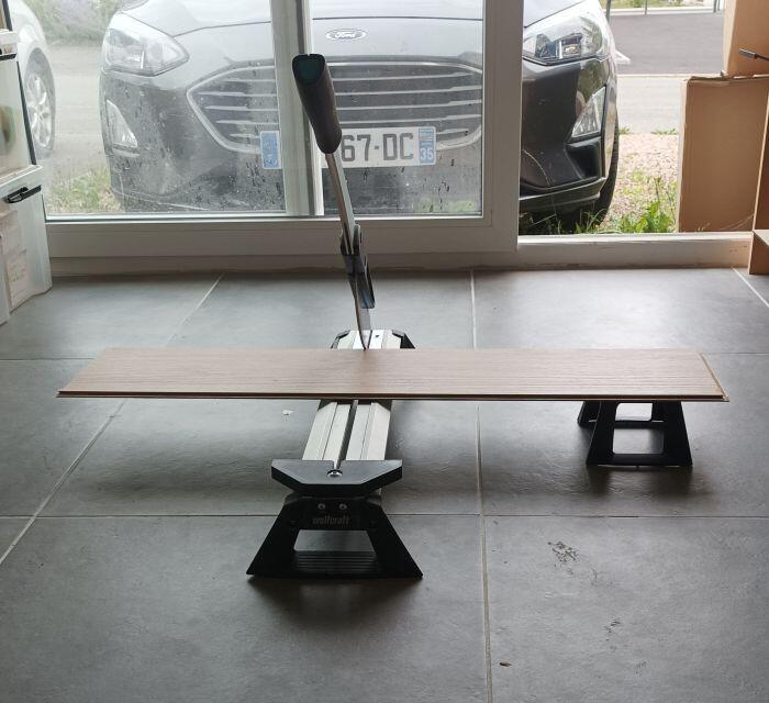 Je loue ma lame coupante, idéale pour la découpe du sol à clipser en bois de 8 mm ou pvc.