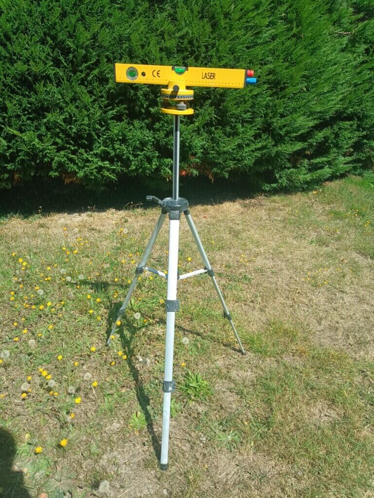 1 embout pour un laser horizontal qui projecte un trait et un embout pour un laser vertical qui projecte un point .