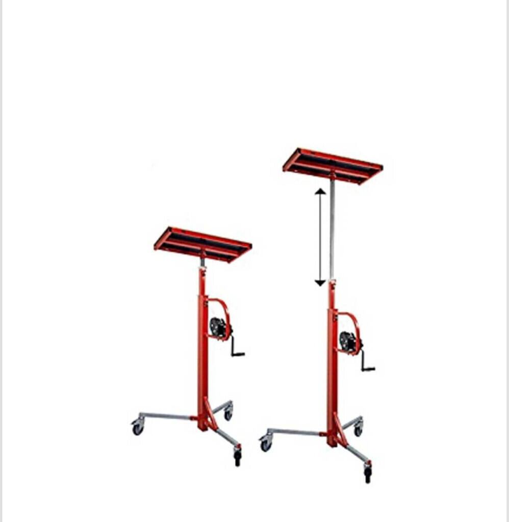 Charge maximale d’utilisation : 100 kg. Hauteur maximale de pose (sol/plateforme) : 3,50 m. Hauteur de chargement : 1,40 m. Plateforme en bois multipli de 9 mm : 795 x 375 mm, label FSC mixte. 2 sangles fournies avec l’appareil. Système de sécurité constitué de 2 câbles : 1 câble de travail et 1 câble de sécurité anti-chute. Système de freinage intégré au treuil enti-retour fixé sur la poignée de guidage. Bon dégagement de la manivelle pour un meilleur contrôle. Équipé de 3 roues freinées Ø 125 mm. Empattement : 1,05 x 1,05 x 1 m. Poids de l’appareil : 29 kg