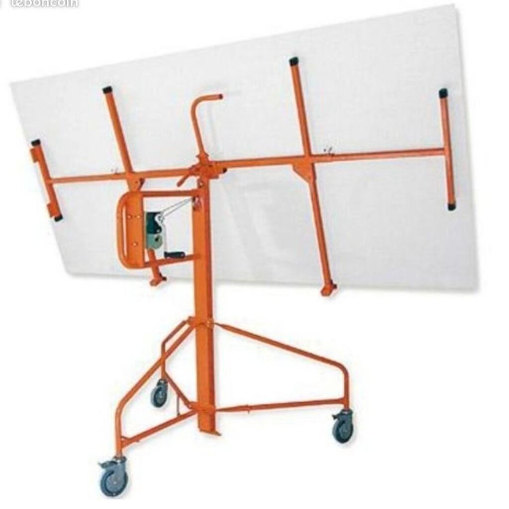Empattement de 1,20x1,20x1,13 m permettant une grande stabilité avec des plaques de grandes dimensions. - 3 roues de diamètre mm dont 2 équipées d’un système de blocage du pivot et du roulage. Hauteur maximale de pose plaque horizontale : 4,50 m ou 3,50 avec 2 rallonges de 0,50 m
