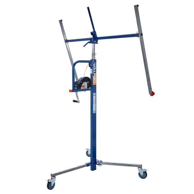 Ce lève-plaque Dexter bleu est conçu pour faciliter la pose de plaques de plâtre sur vos plafonds et plafonds inclinés. Mobile et pratique, il est équipé de roues avec freins qui vous permettent de le déplacer facilement. Son bras télescopique dispose également d'un système de verrouillage pour positionner et sécuriser votre plaque. Entièrement en acier, il soulève jusqu'à 65kg à une hauteur de 3m, tandis que l'ouverture du bras est comprise entre 1,25 et 2,25m.