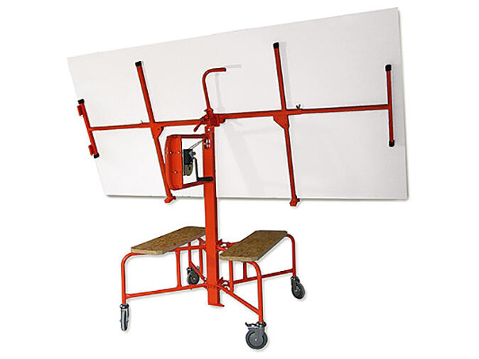 Equipé de 2 plateformes de travail permettant la fixation des plaques au plafond sans escabeau.
