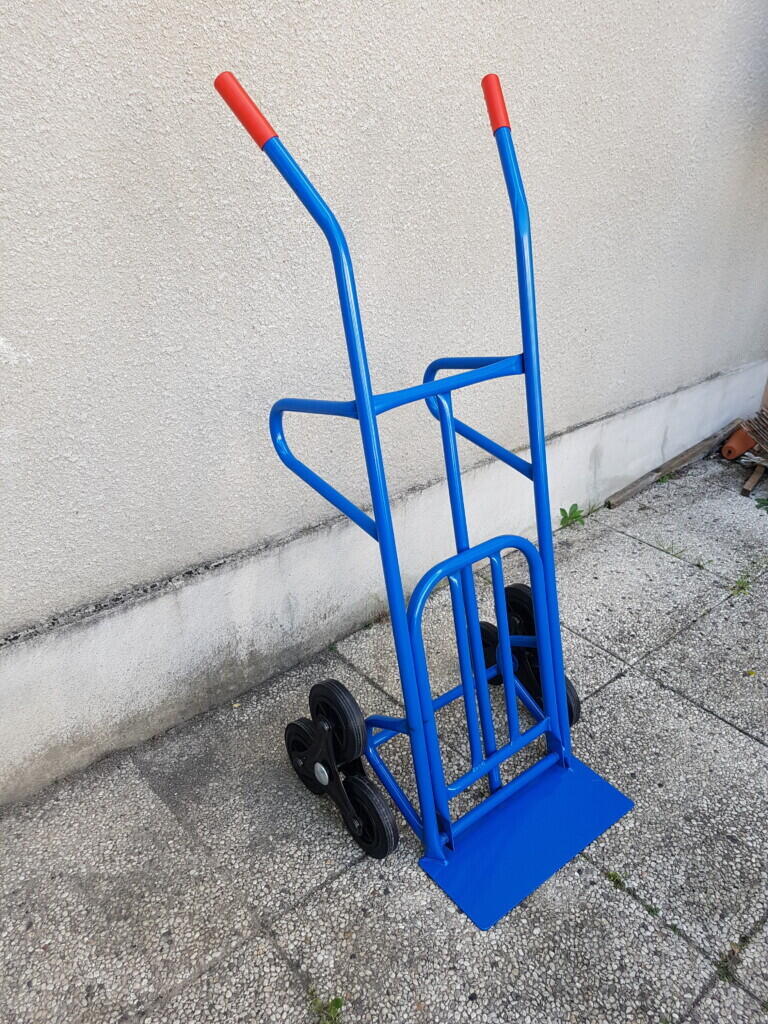 Je loue un diable 3 roues spécial escalier pour votre déménagement. Matériel neuf et de bonne qualité pouvant transporter une charge maximale de 250 kg. Poignées incurvées pour une plus grande maniabilité et bavette rabattable pour faciliter son transport. Idéal pour la manutention d'électroménager et de mobilier dans les escaliers sans se faire mal au dos (lave-linge, réfrigérateur grande taille, meuble, carton, etc).<br />