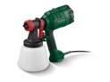 Pistolet de pulvérisation à débit réglable avec soufflerie intégrée de 450 watts.4 buses interchangeables pour une application de peinture de différentes intensités.3 schémas de pulvérisation réglables : jet rond, jet plat horizontal et vertical.Equipement Softgrip antidérapant.Réservoir de peinture dévissable de 1200 ml.