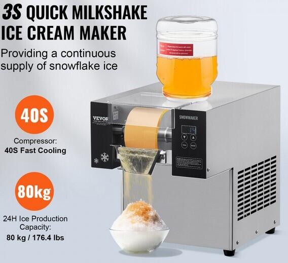 VEVOR Machine à Glace Râpée en Flacon de Neige Commerciale 80 kg/24H en Inox